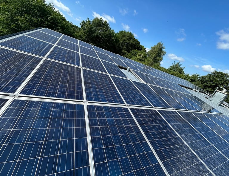 Moderne Solarpanels mit glänzender Oberfläche, die durch unsere Reinigung ihre volle Leistung entfalten.